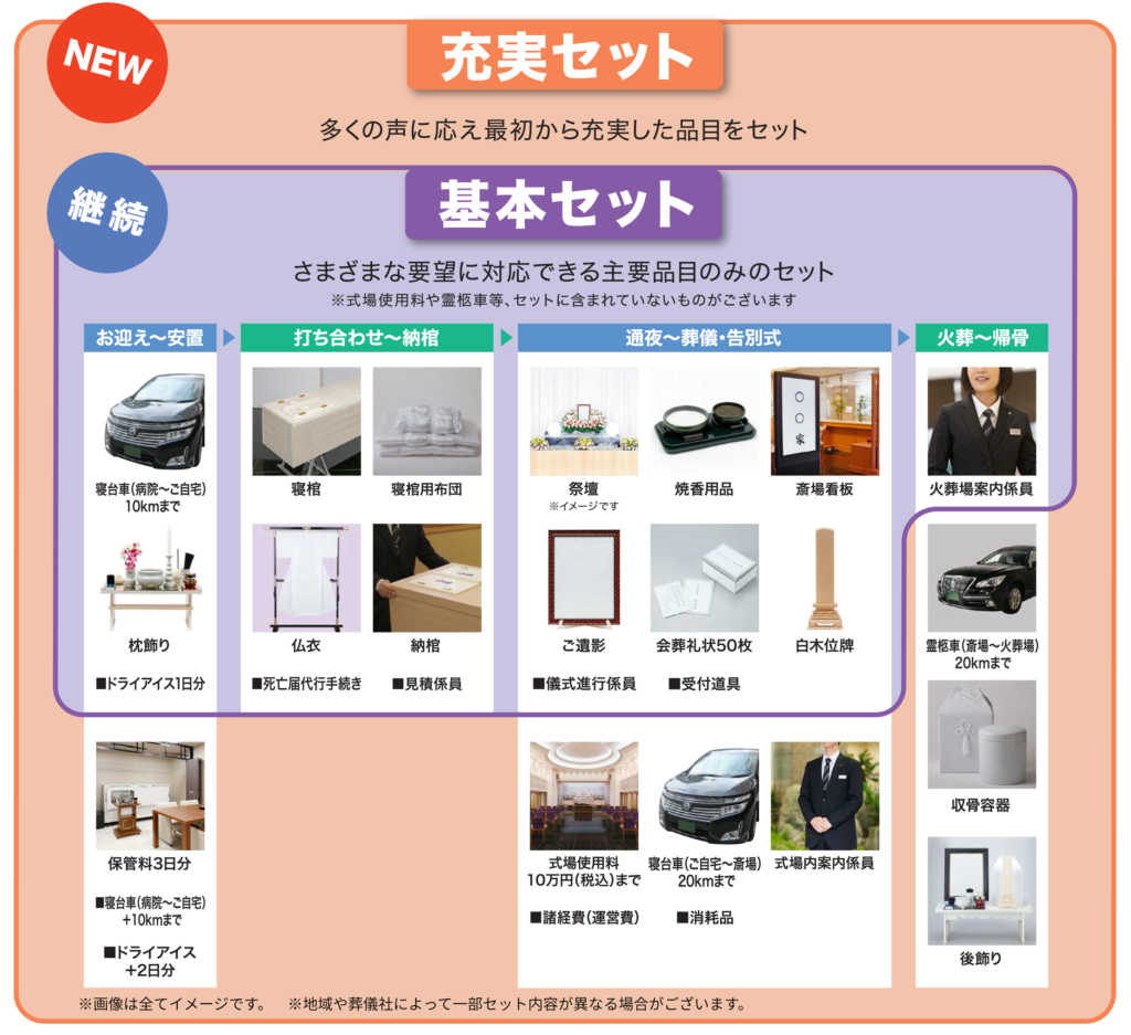 - 葬儀社・斎場・式場によって利用できるセットが限定される場合がございます。