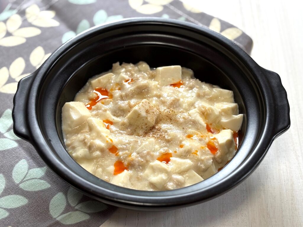 牛乳を加えることで、必要な栄養も摂取できる、やさしい辛さの麻婆豆腐に仕上がります。食卓がほっと温まります。